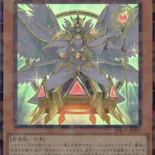 このカード名の効果は1ターンに1度しか使用できない。1:このカードが手札・墓地に存在する場合、自分・相手のメインフェイズに、自分フィールドの天使族モンスターを3体までリリースして発動できる。このカードを特殊召喚する。この効果で特殊召喚したこのカードは、フィールドから離れた場合に除外される。さらに、この効果を発動するためにリリースしたモンスターの数によって以下の効果をそれぞれ適用できる。●2体以上:相手フィールドのカード1枚を破壊する。●3体:自分は2枚ドローする。