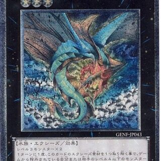 このカード名の2の効果は1ターンに1度しか使用できない。1:自分の「未界域」モンスターが相手モンスターとの戦闘で破壊された時に発動できる。その相手モンスターを破壊する。2:自分の墓地から「未界域」魔法・罠カード3種類を1枚ずつ除外して発動できる。フィールドのカードを全て破壊する。この効果の発動後、ターン終了時まで自分は「未界域」モンスターしか特殊召喚できない。