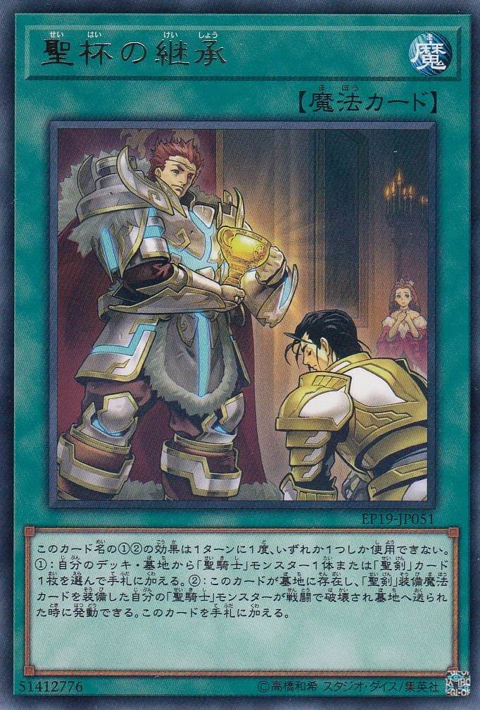 このカード名の12の効果は1ターンに1度、いずれか1つしか使用できない。1:自分のデッキ・墓地から「聖騎士」モンスター1体または「聖剣」カード1枚を選んで手札に加える。2:このカードが墓地に存在し、「聖剣」装備魔法カードを装備した自分の「聖騎士」モンスターが戦闘で破壊され墓地へ送られた時に発動できる。このカードを手札に加える。