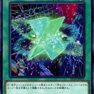 1:1ターンに1度、自分のモンスターが攻撃対象に選択された時に発動できる。その攻撃を無効にする。その後、自分の手札・デッキ・墓地からサイバース族の通常モンスター1体を選んで特殊召喚する。