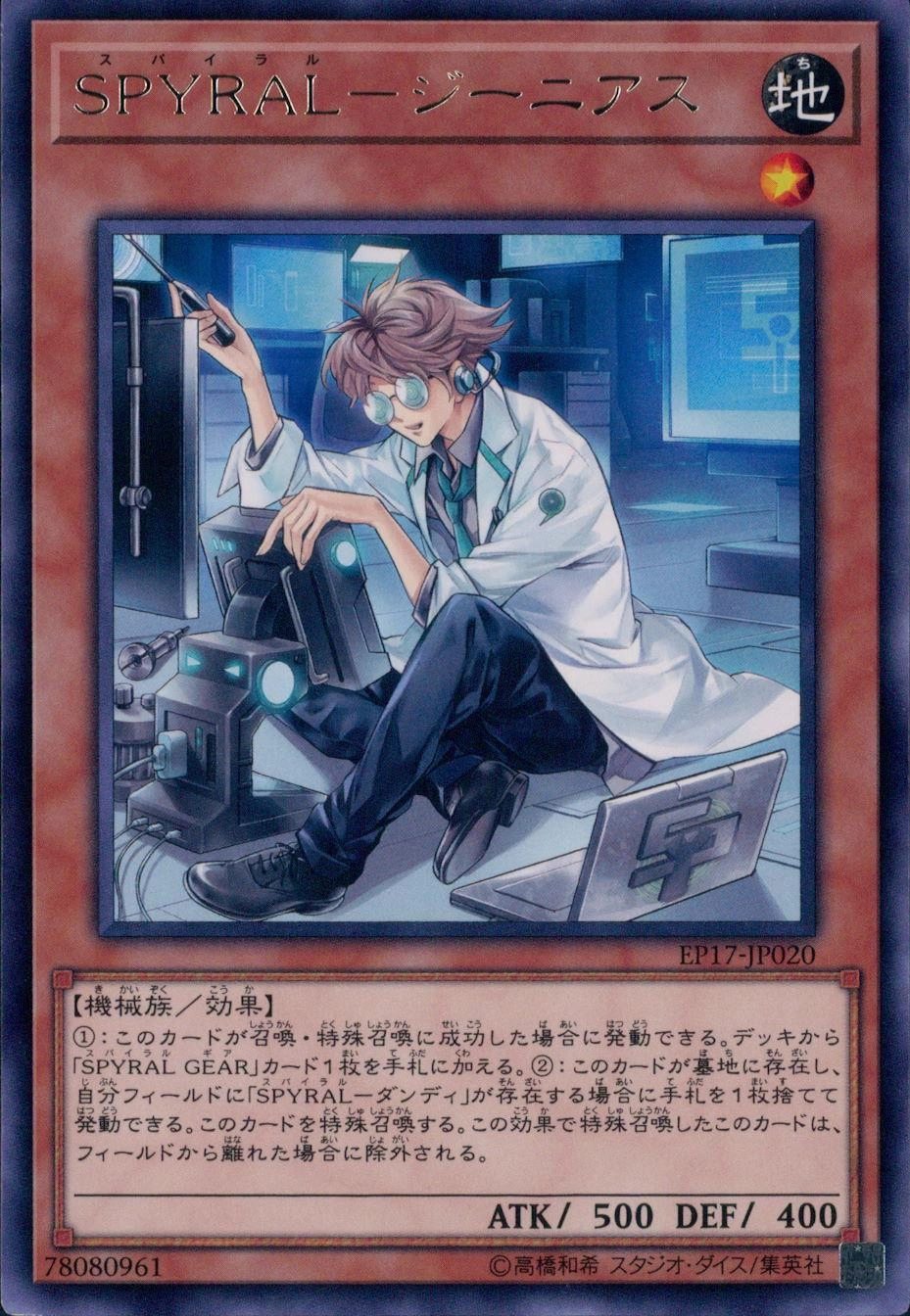 1:このカードが召喚・特殊召喚に成功した場合に発動できる。デッキから「SPYRAL GEAR」カード1枚を手札に加える。2:このカードが墓地に存在し、自分フィールドに「SPYRAL-ダンディ」が存在する場合に手札を1枚捨てて発動できる。このカードを特殊召喚する。この効果で特殊召喚したこのカードは、フィールドから離れた場合に除外される。
