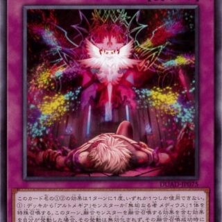 1:このカードがモンスターゾーンに存在する限り、お互いにフィールドの他のモンスターを魔法カードの効果の対象にできない。2:1ターンに1度、手札から魔法カード1枚を捨てて発動できる。自分の手札・デッキ・墓地から装備魔法カード1枚をこのカードに装備する。その装備魔法カードはエンドフェイズに手札に戻る。