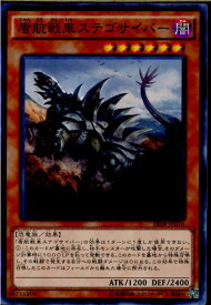 闇属性 レベル 6 【恐竜族/効果】 攻撃力 1200 守備力 2400 「盾航戦車ステゴサイバー」の効果は1ターンに1度しか使用できない。1:このカードが墓地に存在し、相手モンスターが攻撃した場合、そのダメージ計算時に1000LPを払って発動できる。このカードを墓地から特殊召喚し、その戦闘で発生する自分への戦闘ダメージは0になる。この効果で特殊召喚したこのカードはフィールドから離れた場合に除外される。