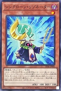 このカード名の1の方法による特殊召喚は1ターンに1度しかできない。1:フィールドにSモンスターが存在する場合、このカードは手札から特殊召喚できる。2:このカードがフィールドから墓地へ送られた場合、「シンクローン・リゾネーター」以外の自分の墓地の「リゾネーター」モンスター1体を対象として発動できる。そのモンスターを手札に加える。