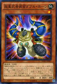地属性 レベル 1 【機械族/効果】 攻撃力 0 守備力 300 「超重武者装留ダブル・ホーン」の2の効果は1ターンに1度しか使用できない。1:自分メインフェイズに自分フィールドの「超重武者」モンスター1体を対象として発動できる。自分の手札・フィールドからこのモンスターを装備カード扱いとしてその自分のモンスターに装備する。装備モンスターは、1度のバトルフェイズ中に2回攻撃できる。2:このカードの効果でこのカードが装備されている場合に発動できる。装備されているこのカードを特殊召喚する。