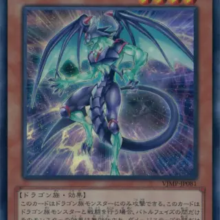 光属性 レベル 4 【ドラゴン族/効果】 攻撃力 2000 守備力 1200 1:このカードは直接攻撃できず、ドラゴン族モンスターにのみ攻撃できる。2:このカードがドラゴン族モンスターと戦闘を行う場合、バトルフェイズの間だけそのモンスターの効果は無効化され、ダメージステップの間だけこのカードの攻撃力は1000アップする。