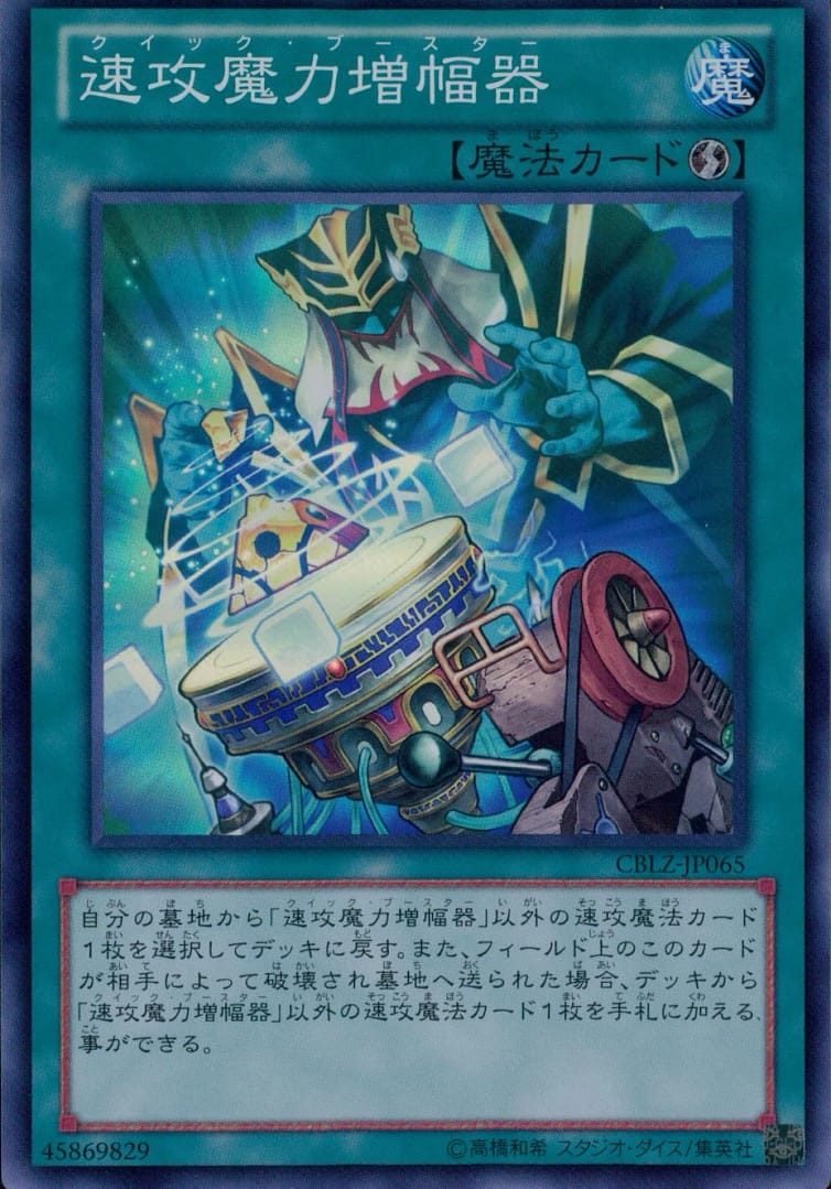 自分の墓地から「速攻魔力増幅器」以外の速攻魔法カード1枚を選択してデッキに戻す。また、フィールド上のこのカードが相手によって破壊され墓地へ送られた場合、デッキから「速攻魔力増幅器」以外の速攻魔法カード1枚を手札に加える事ができる。