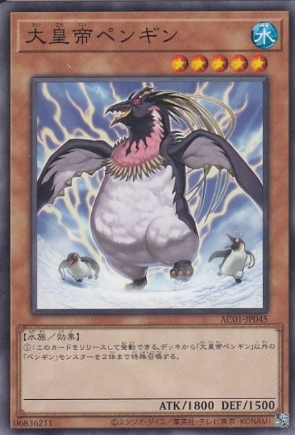 1:このカードをリリースして発動できる。デッキから「大皇帝ペンギン」以外の「ペンギン」モンスターを2体まで特殊召喚する。