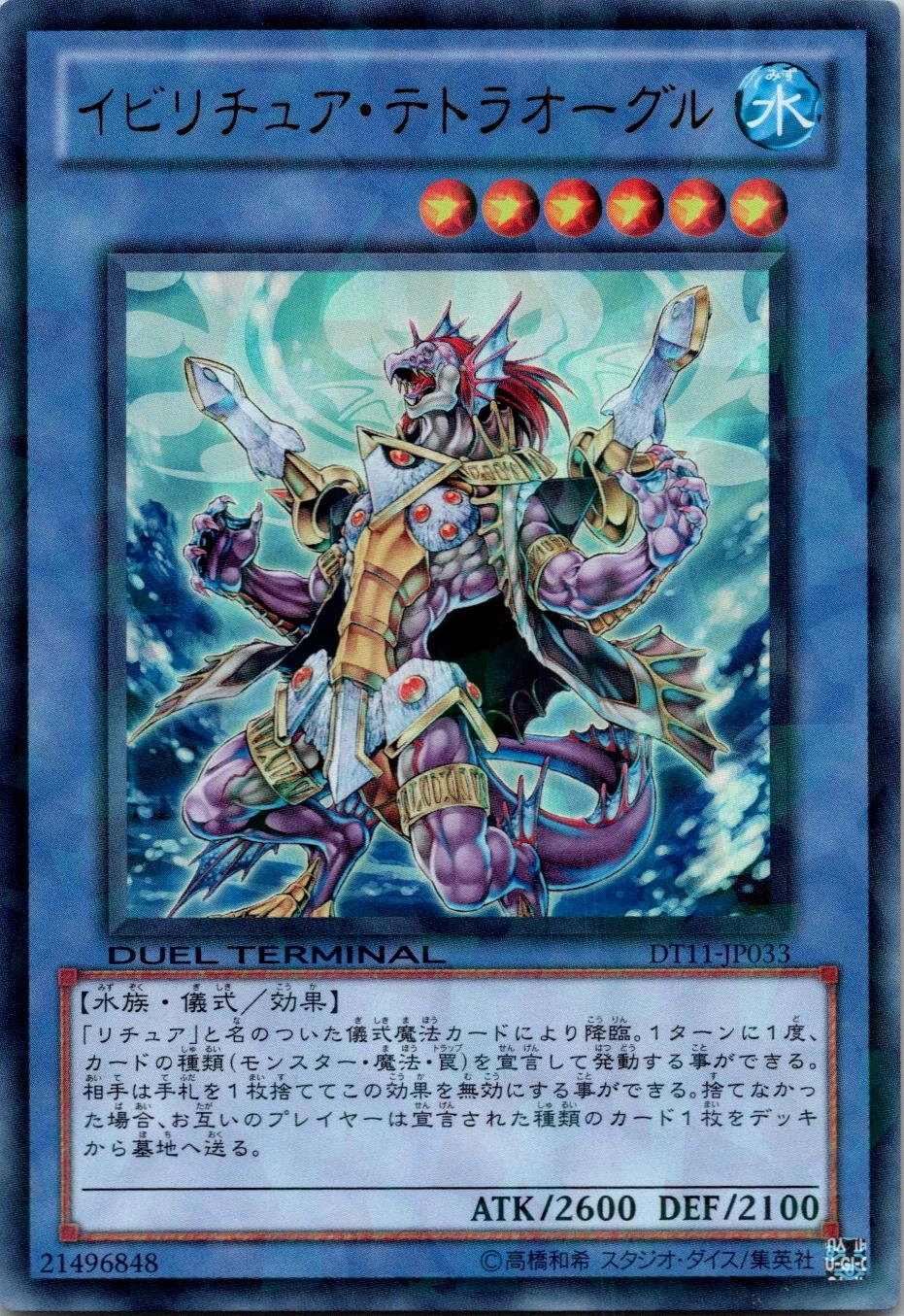「リチュア」と名のついた儀式魔法カードにより降臨。1ターンに1度、カードの種類(モンスター・魔法・罠)を宣言して発動できる。相手は手札を1枚捨ててこの効果を無効にできる。捨てなかった場合、お互いのプレイヤーは宣言された種類のカード1枚をデッキから墓地へ送る。