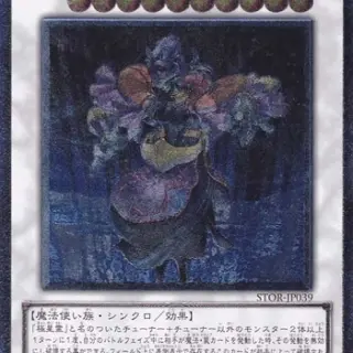 闇属性チューナー+チューナー以外の昆虫族モンスター1体このカードは戦闘では破壊されない。このカードの攻撃宣言時、攻撃対象モンスターの攻撃力がこのカードの攻撃力よりも高い場合、攻撃対象モンスターの攻撃力をバトルフェイズ終了時までこのカードと同じ数値にする。このカードが戦闘によって相手モンスターを破壊し墓地へ送った時、相手のデッキの上からカードを3枚墓地へ送る。