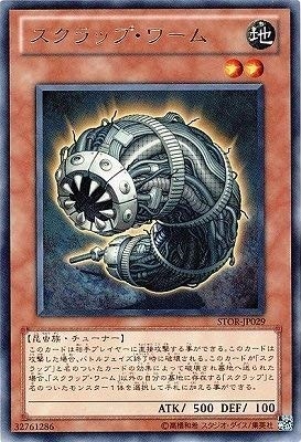 このカードは相手プレイヤーに直接攻撃する事ができる。このカードは攻撃した場合、バトルフェイズ終了時に破壊される。このカードが「スクラップ」と名のついたカードの効果によって破壊され墓地へ送られた場合、「スクラップ・ワーム」以外の自分の墓地に存在する「スクラップ」と名のついたモンスター1体を選択して手札に加える事ができる。