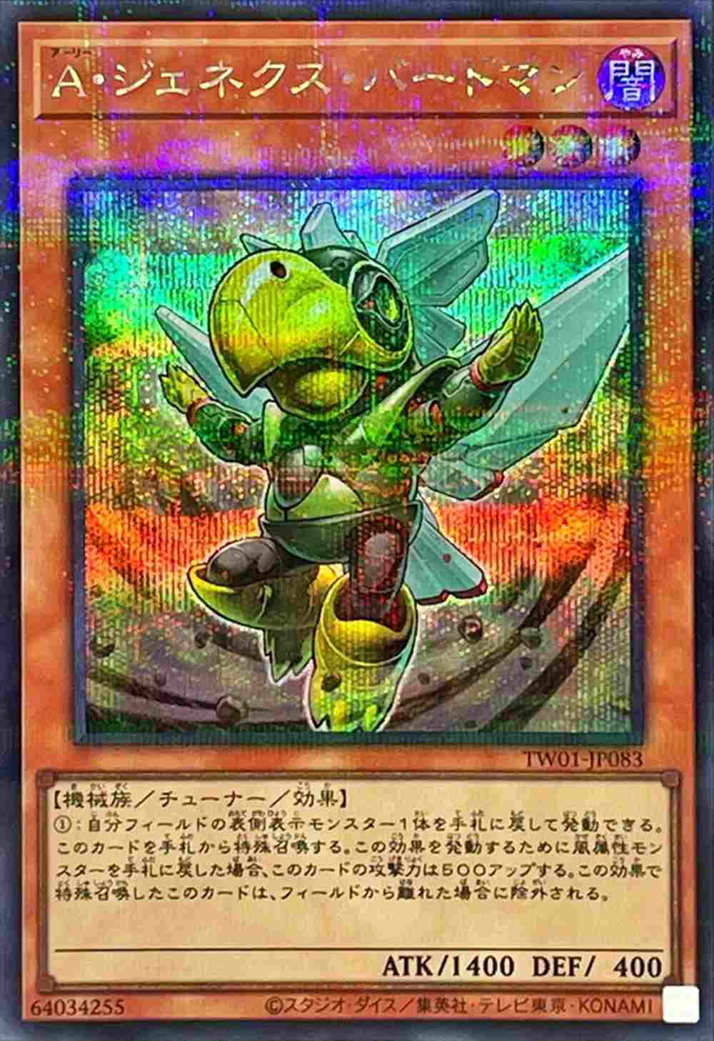 1:自分フィールドの表側表示モンスター1体を手札に戻して発動できる。このカードを手札から特殊召喚する。この効果を発動するために風属性モンスターを手札に戻した場合、このカードの攻撃力は500アップする。この効果で特殊召喚したこのカードは、フィールドから離れた場合に除外される。