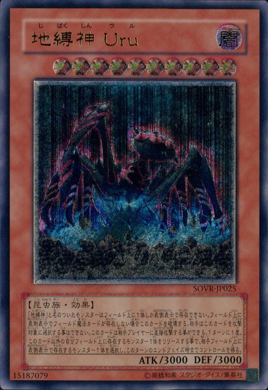 「地縛神」と名のついたモンスターはフィールド上に1体しか表側表示で存在できない。フィールド魔法カードが表側表示で存在しない場合このカードを破壊する。相手はこのカードを攻撃対象に選択できない。このカードは相手プレイヤーに直接攻撃できる。また、1ターンに1度、このカード以外の自分フィールド上のモンスター1体をリリースする事で、相手フィールド上に表側表示で存在するモンスター1体を選択し、エンドフェイズ時までコントロールを得る。