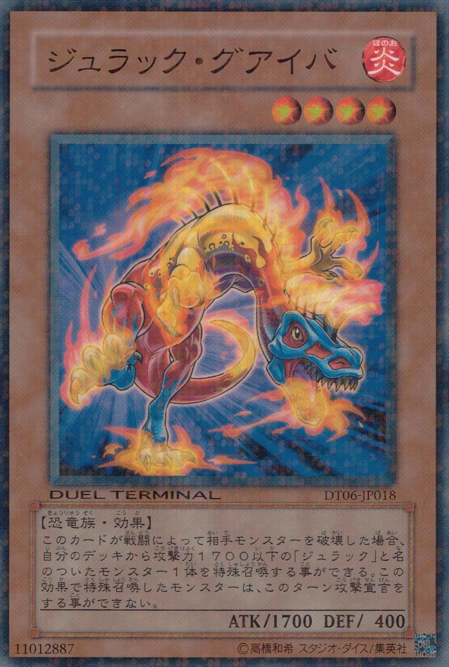 1:このカードが戦闘で相手モンスターを破壊した時に発動できる。デッキから攻撃力1700以下の「ジュラック」モンスター1体を特殊召喚する。この効果で特殊召喚したモンスターは、このターン攻撃宣言できない。
